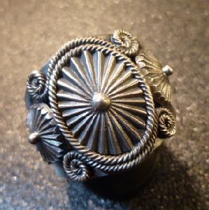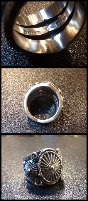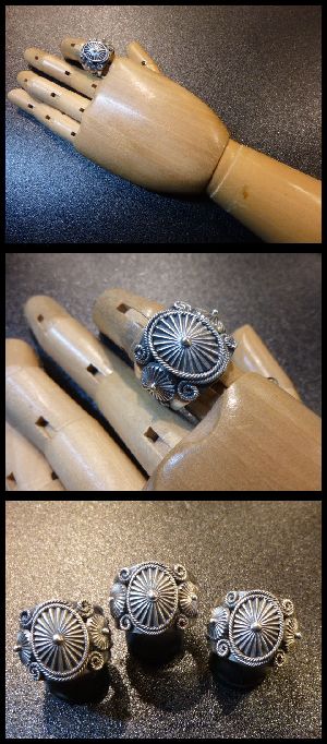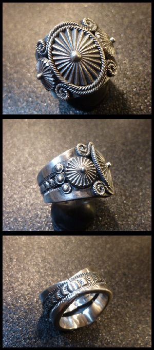 ホーム | ↓ナバホAll・Artist > リングナバホ Derrick・Gordon インゴットシルバー スタンプワーク×アップリケコンチョ リング20号