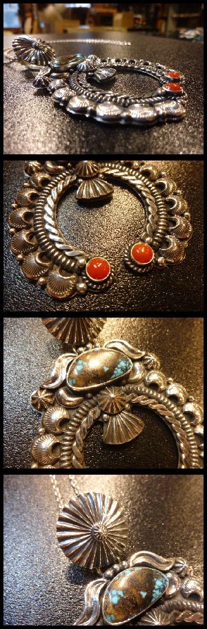 ナバホ Delbert・Gordon スタンプワーク×アップリケ アパッチブルーターコイズ&コーラル付 ナジャTOP
