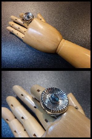 ホーム | ↓ナバホAll・Artist > リングナバホ Floyd・Parkhurst スタンプワーク サンバースト アパッチブルーターコイズ付 ボックスリング20・5号
