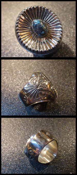 美しいサンバーストをデザインした、ナバホ族のリングになります。