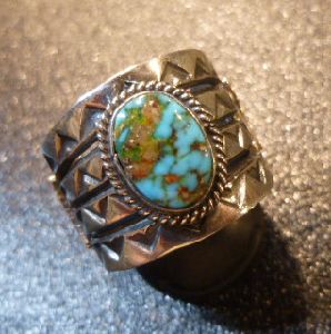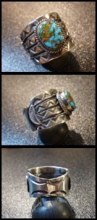 ナバホ Andy・Cadman スタンプワーク ソノランローズターコイズ付 スプリットリング21・5号