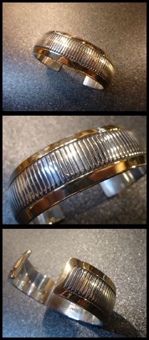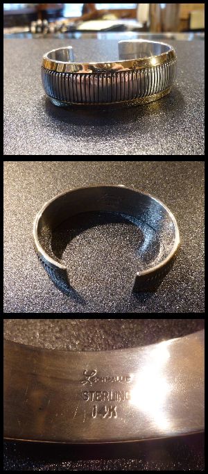 高級感溢れるオーバレイ&ゴールド使用で仕上がった、ナバホ族のバングルになります。