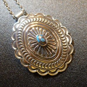 人気のコンチョデザインに色鮮やかなペルシアン・ターコイズの付いた、ナバホ族のTOPになります。