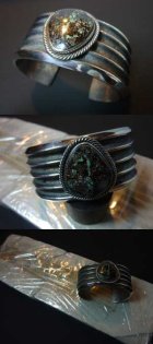 希少な「ティンバーラインターコイズ」が付いた、ナバホ族のバングルになります。