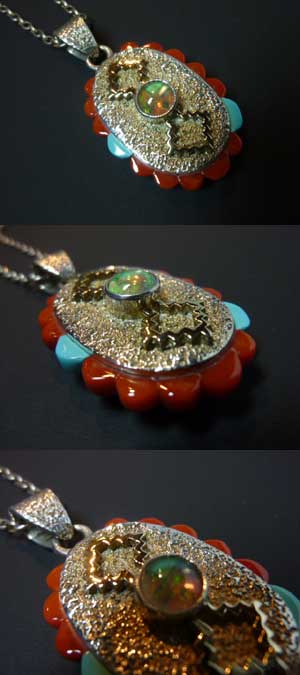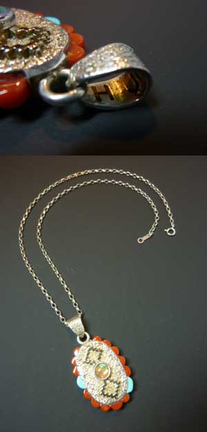 ハイグレードのターコイズ&コーラルで見事にインレイが施されています。