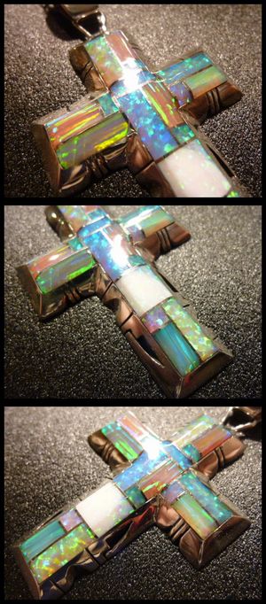 ナバホ Jerry・N・Platero インレイ マルチオパール クロス型TOP