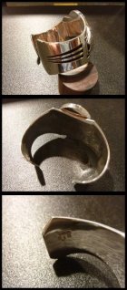 見事なシルバーオーバレイが美しい、ナバホ族のバングルになります。