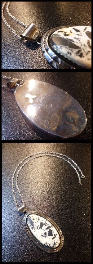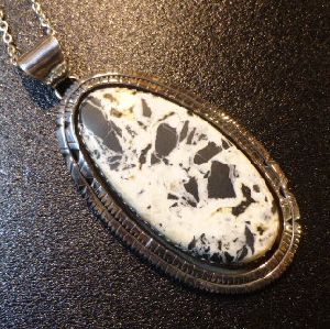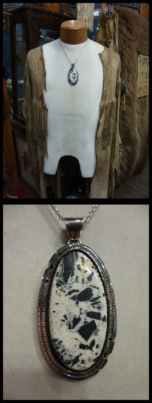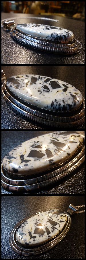 人気のホワイトバッファローをセットした、ナバホ族のペンダントトップになります。