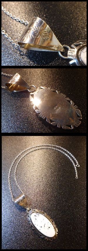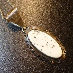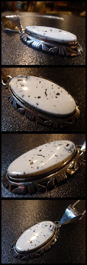 人気のホワイトバッファローをセットした、ナバホ族のペンダントトップになります。