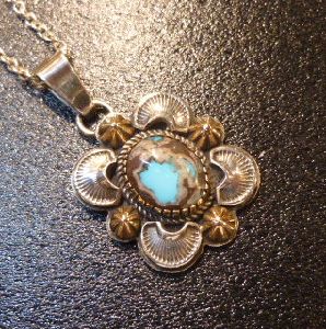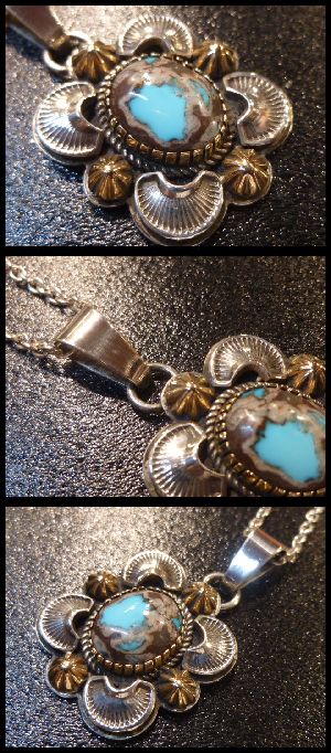 14Kゴールドコンチョにビスビーターコイズをセットした、ナバホ族のTOPになります。