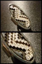 見事なラグ柄オーバレイがデザインされた、ナバホ族のリングになります。