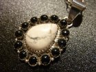 センターにホワイトハウライト、周りにオニキスのセットされた、ナバホ族のペンダントトップになります。