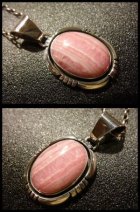 可愛らしいピンクストーン「インカローズ」がセットされた、ナバホ族のペンダントトップになります。