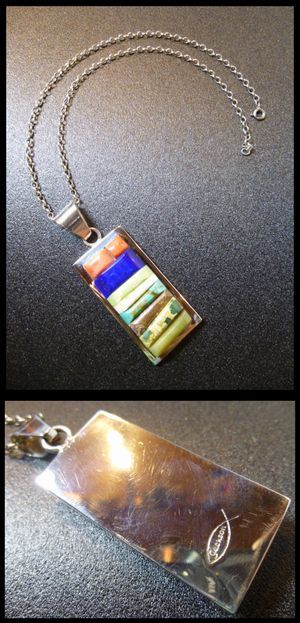 高級感溢れるマルチストーンインレイで仕上がった、ナバホ族のペンダントトップになります。