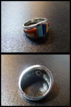 色カラフルなストーン&インレイワークで仕上がった、ナバホ族のリングになります。
