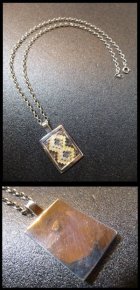 見事なラグ柄オーバレイがデザインされた、ナバホ族のペンダントトップになります。