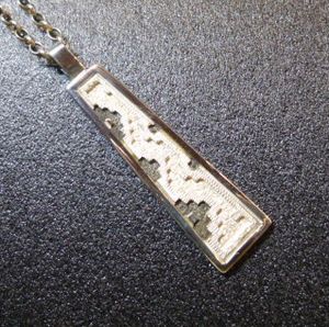 見事なラグ柄オーバレイがデザインされた、ナバホ族のペンダントトップになります。
