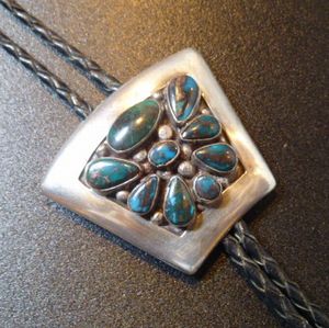 素晴らしく美しいオールドビスビーターコイズが散らばった、ナバホ族のボロタイになります。