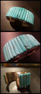 ナバホ Marco・Begaye オーバレイ 14Kゴールドアイバースト&ビスビーターコイズetc TOP