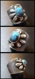 見事なトゥーファーキャスト×モレンチターコイズをセットした、ナバホ族のリングになります。