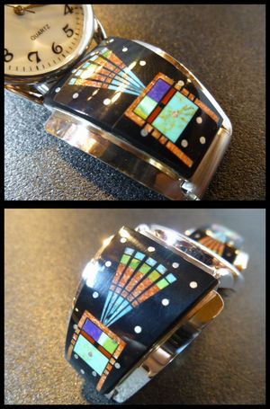 素晴らしく綺麗なインレイワークが施された、ナバホ族のウォッチブレスLサイズになります。