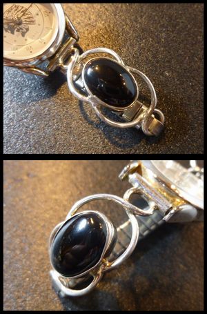 こちらはブラックオニキスをセットした、ナバホ族のウォッチブレスSサイズになります。