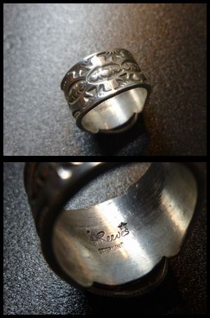 こちらはナバホ族のベテランアーティスト故「ゲーリー・リーブス」作リングになります。