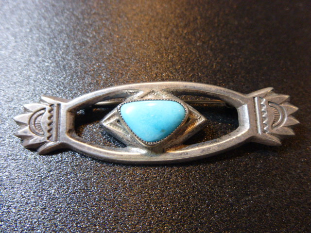 トラディショナルなキャストとターコイズが、うまく合わさったピンブローチです。