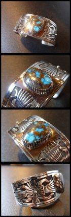 ナバホ Howard・Nelson オーバレイ ケトー×サンバースト キャンデラリアターコイズ付 バングル約16〜17cm用