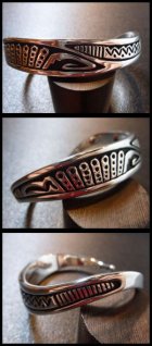 ワイルドかつ上品な仕上がりのオーバレイが美しい、ナバホ族のバングルになります。