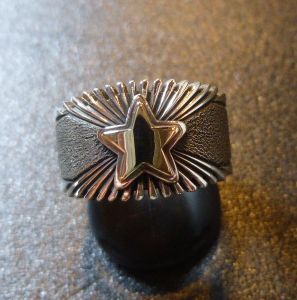 見事なサンバースト&14金Goldのスターが美しい、ナバホ族のリングになります。