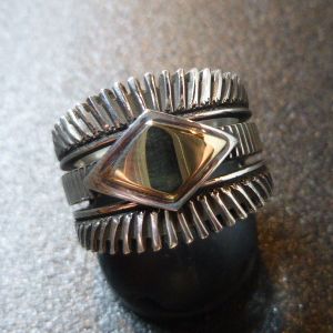 見事なサンバースト&14金ゴールドのダイアが美しい、ナバホ族のリングになります。