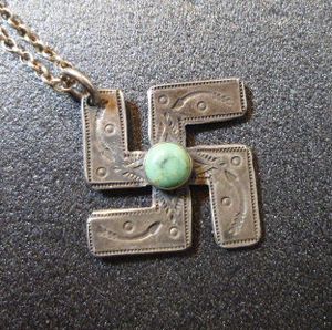 こちらのスワスティカ型の作品はピンブローチタイプが多く、こちらのペンダントトップタイプは