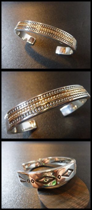 高級感溢れる14Kゴールド&シルバーに仕上がった、ナバホ族のバングルになります。