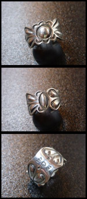 定評あるダブルスタンプワークで仕上がった、ナバホ族のリングになります。