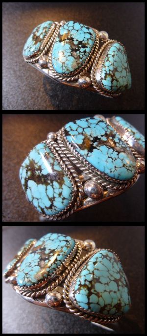 美しいブルーにブラックウェブの美しいアパッチターコイズをセットしております。