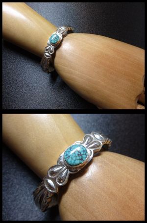 ナバホ Ray・Adakai ダブルスタンプワーク ターコイズマウンテンターコイズ付 約1・2cm幅バングル約16〜17cm用