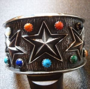 ホーム | ↓ナバホAll・Artist > バングルナバホ Aaron・Anderson トゥーファーキャスト マルチカラーストーン付 スターモチーフバングル約16〜17・5cm用