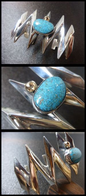 ターコイズ横にはゴールドボールもセットされた、バランスの取れた作品です。