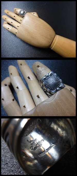人気のコンチョアップリケで仕上がった、ナバホ族のリングになります。