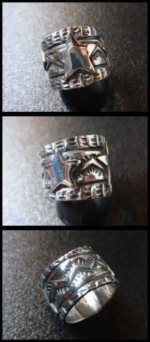 人気のスターがデザインスタンプワークされた、ナバホ族のリングになります。