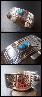 こちらは数多くの賞を獲得しているナバホ族のトップアーティスト「ハワード・ネルソン」作バングルになります。
