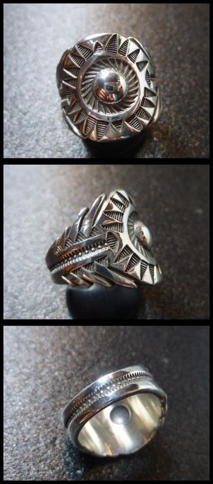 美しいスタンプワークで仕上がった、ナバホ族のリングになります。