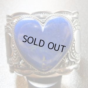 整ったスタンプワークにハート型のラピスラズリがセットされた、ナバホ族のバングルになります。