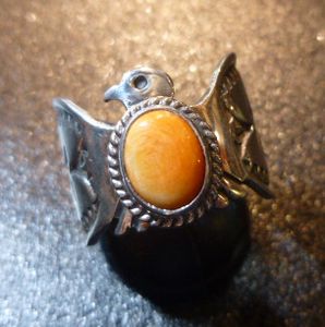 ナバホ Sunshine・Reeves スタンプワーク オイスターシェル付 イーグル型リング18・5号