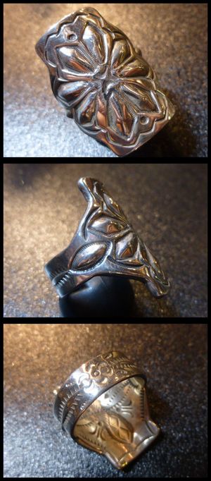 定評あるダブルスタンプワークで仕上がった、ナバホ族のリングになります。
