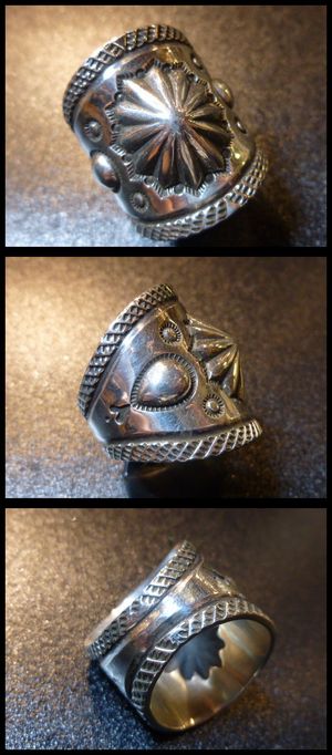 美しいスタンプワークで仕上がった、ナバホ族のリングになります。
