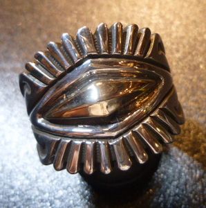 ヘビーゲージ×立体感あるスタンプワークで仕上がった、ナバホ族のリングになります。