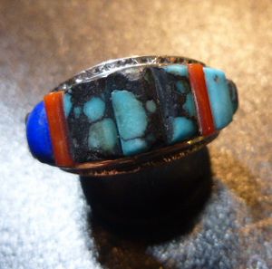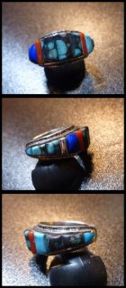 トゥーファーキャストでのシルバーベースに、ターコイズ&コーラル&ラピスラズリでの