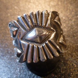 ヘビーゲージ×立体感あるスタンプワークで仕上がった、ナバホ族のリングになります。
